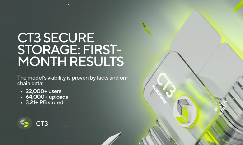 CT3 Secure Storage, una plataforma de almacenamiento descentralizado, ha reportado cifras significativas en su primer mes de operación, alcanzando más de 3.21 petabytes de datos almacenados y superando los 22,000 usuarios únicos, según anunció la compañía el 25 de febrero de 2026 desde Londres, Reino Unido. Estos resultados de almacenamiento descentralizado posicionan a la plataforma como un competidor emergente en el sector de soluciones de almacenamiento en la nube basadas en blockchain.